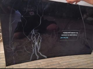 Televisión de pantalla plana marca Samsung. La pantalla está rota y no da imagen, pero la tele si se conecta a la luz y da sonido al encenderse. Sin cables ni mando. Para piezas o para arreglar. ----------------------------------- Televisión, televisor, pantalla plana, Smart TV, Toshiba, TV, tecnología, pantalla, plana, piezas, soporte, patas, mando.