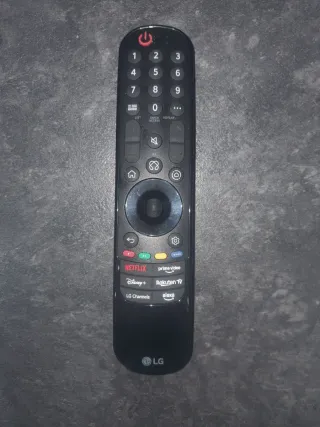 Vendo mando a distancia LG Magic Remote original, modelo MR25GB (referencia AKB76046801). Es el modelo más actual de LG, diseñado específicamente para las Smart TV de las gamas 2024 y 2025. Características principales: Puntero inalámbrico: Funciona como un ratón en pantalla para una navegación rápida. Control por voz: Botón dedicado para comandos de voz y asistentes. Botones de acceso directo: Netflix, Prime Video, Disney+, Rakuten TV, LG Channels y Alexa. Tecnología NFC: Permite vincular tu smartphone al televisor con solo acercarlo al mando. Compatibilidad: Funciona con prácticamente todos los modelos LG Smart TV reciente