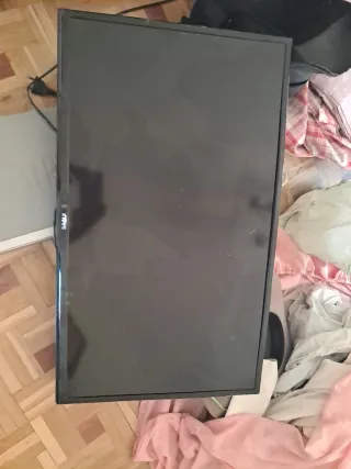 Televisor de pantalla plana en color negro. No es smartTV, se puede conectar puerto USB. - Incluye el mando. - Soporte estable. En perfecto estado y funcionamiento. La dejo a 50€ si vienes a recogerla. Se entrega en La Solana y Ruidera (Ciudad Real) o Alcobendas (Madrid)