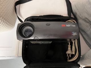 Proyector 3M MP7760 en color negro y gris, con su pantalla. - Tecnología DLP. - Incluye cables de conexión.