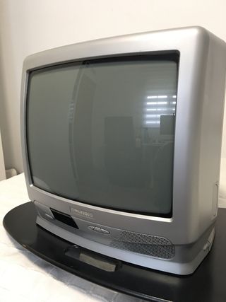 Televisión Grundig P37-2401 de 14 pulgadas. Compacta y relativamente ligera. Se ha limpiado y puesto a punto. Lista para usar con consolas como Wii, PS1, PS2, Dreamcast,... Tiene un altavoz mono bastante potente.