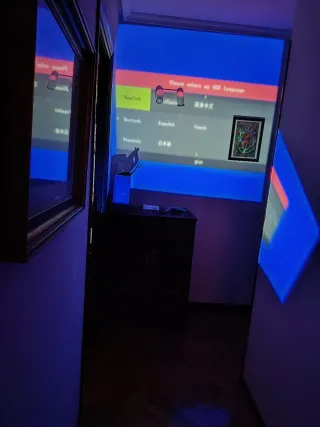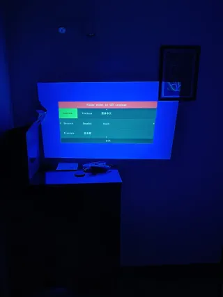 Pantalla de proyector para colgar en la pared. Ideal para presentaciones o cine en casa. - Mecanismo de enrollado. - Superficie blanca mate. Regalo tambien un proyector que funciona muy bien con HDMI y se puede conectar mediante un wifi que emite el propio conector pero que tiene tambien las clavijas un poco oxidadas. No encontraba la marca que era y he puesto otra.