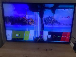 LG 43UJ630V — 43 pulgadas. Tiene la pantalla rota pero vale para reparar o para piezas. Tiene youtube, spotify, netflix, disney, dazn, prime video, twitch, atresmedia. El audio se escucha perfectamente.