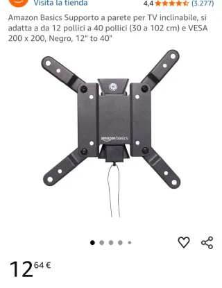Soporte de pared inclinable para TV de Amazon Basics. Diseñado para televisores de 12 a 40 pulgadas. - Compatible con VESA 200 x 200. - Color negro.