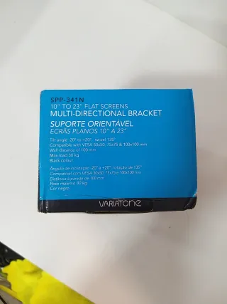 Soporte orientable para pantallas planas de 10 a 23 pulgadas. - Ángulo de inclinación: -20° a +20°. - Giro: 135°. - Compatible con VESA 50x50, 75x75 y 100x100 mm. - Distancia a la pared: 100 mm. - Peso máximo soportado: 30 kg. - Color: negro.