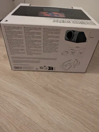 Proyector para smartphone con un diseño moderno, usado una vez nada más, vendo por no usar - Fabricado con materiales reciclados. - Incluye soporte para el teléfono. - para jugar con niños