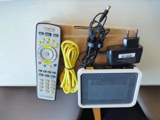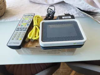 Codificador de TV de Movistar. - Incluye mando a distancia. - Incluye cable de red amarillo. - Incluye adaptador de corriente.