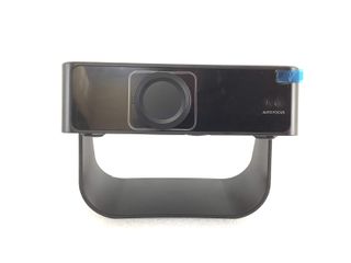 Proyector compacto con un diseño moderno. - Lente de alta definición. - Rejilla frontal para ventilación.