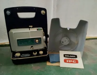 Proyector de 8mm Elmo FP-C, modelo Dual Reel. Incluye su funda protectora y manual. - Proyector de película de 8mm. - Incluye carrete para auto-reel. - Funda protectora gris. - Manual de instrucciones.
