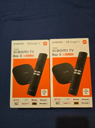 Dos unidades de Xiaomi TV Box S, 3ª generación, con resolución 4K Ultra-HD. - Incluye mando a distancia con Google Assistant. - Compatible con Netflix, Prime Video, YouTube y más.