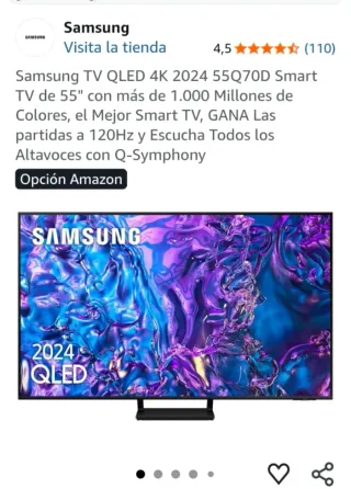 Televisor Samsung Qled Q70D Pantalla 4k Qled con 120hz perfecto para gaming. Con 6 meses de poco uso, con su caja y embalajes como nueva, factura con garantía Samsung hasta 20/04/2027. -VENDEDOR PROFESIONAL +1500 VALORACIONES 5 ⭐ -PRECIO NO NEGOCIABLE ❌ -HAGO ENVÍOS WALLAPOP O POR MENSAJERÍA PREVIO PAGO 📦