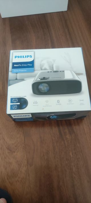 Proyector Philips NeoPix Easy Play, en perfecto estado. Es un proyector para casa. - Resolución Full HD. - Conexión Wi-Fi para streaming. - Conectividad Bluetooth. - Reproduce archivos multimedia. - Altavoces incorporados.