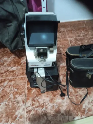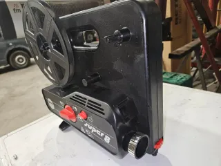 Proyector de cine Super 8 en color negro. Aunque tiene luz y se oye el motor no se garantiza un correcto funcionamiento, procede de un trastero y no hay pelicula con que probar. Se vende por 18 euros como producto no funcional. No se rebaja precio