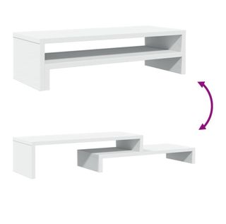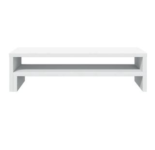 Soporte de madera blanco para monitor o TV. - Diseño moderno y minimalista. - Amplio espacio de almacenamiento. - Dimensiones: 54 cm de ancho, 22 cm de profundidad y 15 cm de alto.