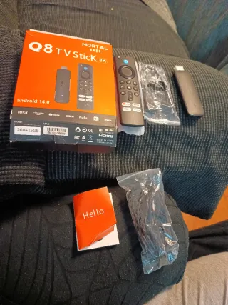 Dispositivo de streaming Mortal Q8 TV Stick con Android 14.0. - Resolución 8K. - Incluye mando a distancia. - Compatible con Netflix, Prime Video, YouTube, ESPN, Hulu y Max. - Modelo: 2GB+16GB. - MAC: MAC:001A79563569.