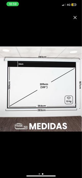 NUEVA SIN ESTRENAR. IDEAL PARA REGALO. Pantalla de proyección manual Luxscreen de 120 pulgadas. - Superficie blanca mate de alta luminosidad. - Compatible con proyectores 4K y 1080p. - Formato válido para 4:3 y 16:9. - Borde negro. - Tamaño: 264 x 150 cm.