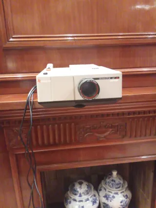 Proyector de diapositivas de la marca CABIN. Le falta el cable de corriente y la bombilla que tiene es un poco grande y no cierra , no es la bombilla original. - Diseño compacto y funcional. - Carcasa en tonos beige y gris.