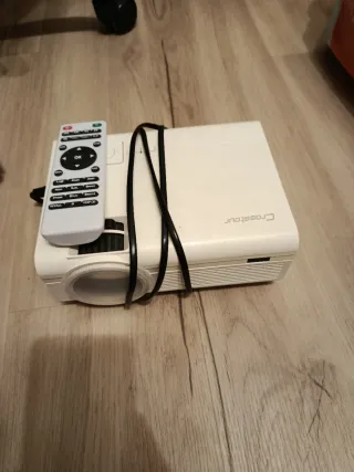 Proyector de la marca Crosstour en color blanco. Incluye mando a distancia y cable de alimentación. - Diseño compacto y ligero. - Mando a distancia incluido. - Cable de alimentación.