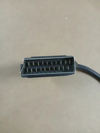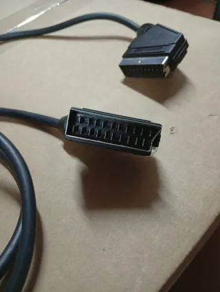 Cable de conexión con conectores Euroconector (SCART) en ambos extremos. Permite la conexión de dispositivos de audio y vídeo. - Conectores metálicos. - Cable negro.