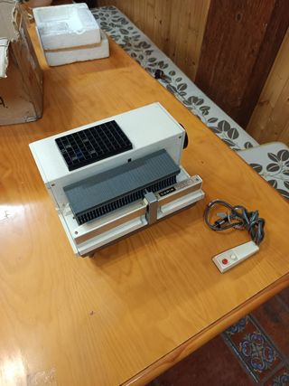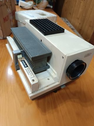 Proyector de diapositivas antiguo, ideal para amantes del cine clásico. Se encuentra en buen estado de conservación. - Funciona con corriente eléctrica. - Incluye cable de conexión.