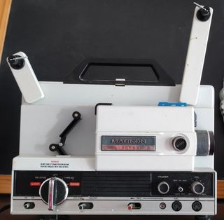Proyector vintage de cine Super 8 con sonido magnético. Modelo Magnon SD-800, años 70-80. Incluye carcasa original tipo maletín. Perfecto para coleccionistas de cine en 8 mm, restauración o decoración retro. #super8 super8condonido #magnon