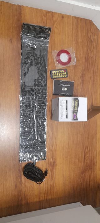 Panel de matriz LED nuevo, ideal para proyectos de visualización. App para mas opciones, frases, reloj, ojos, etc - Incluye control remoto. - Cinta adhesiva de doble cara. - Cable de conexión USB.