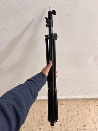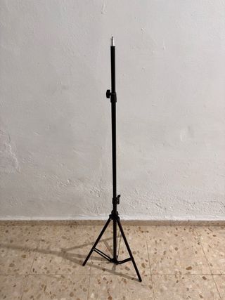 Trípode negro para proyector o equipo similar. Es ajustable en altura (Hasta 2 metros) y fácil de montar. - Estructura metálica. - Base de trípode estable. - Soporte superior para equipo.