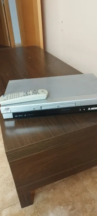 Reproductor de DVD JVC en color plata. Se encuentra en perfecto estado. - Incluye mando a distancia. - Bandeja para disco extraíble.