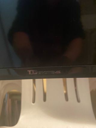 Funciona perfectamente, lo unico que con fondos oscuros en la parte de arriba salen unas lineas, ver foto. Se ve mejor que muchas modernas baratas.