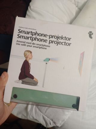El dispositivo de la imagen es el proyector portátil Samsung The Freestyle. Pantalla: Capaz de proyectar imágenes desde 30 hasta 100 pulgadas con resolución Full HD. Diseño: Cuenta con un soporte que permite una rotación de 360 grados, facilitando la proyección en paredes o techos. Funciones: Incorpora Smart TV, altavoz de sonido envolvente 360º y calibración automática de imagen. Conectividad: Incluye puerto micro HDMI y soporte para Gaming Hub. En internet esta en 900/800€
