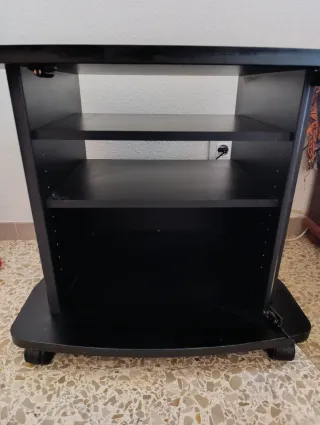 Solo venta en persona Mesa para televisor con estructura de madera y puerta frontal de cristal. Cuenta con ruedas para facilitar su movilidad. - Diseño moderno. - Puerta de cristal. - Ruedas para desplazamiento. - Anchura 64 cm - Altura 64 cm - Profundidad 48 cm