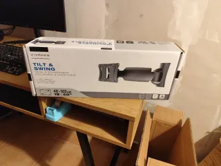 Soporte de pared para TV Vivanco, modelo Tilt & Swing. - Compatible con pantallas de 48-102 cm (19-40 pulgadas). - Permite inclinación y giro para ajustar el ángulo de visión. - Incluye todo lo necesario para su instalación.