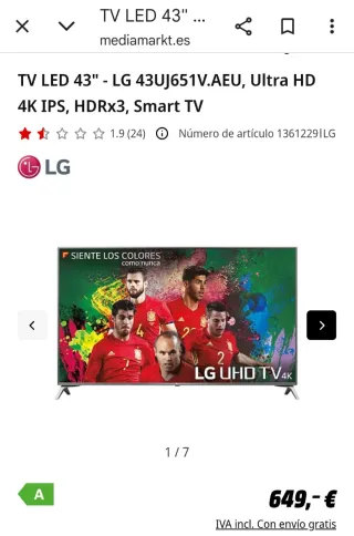 Tele LG esta en buen estado no esta nuevo. Llevo 1 año con la tele usandola sigue nueva no tiene ningun golpe ni nada solo tiene una raja blanca por detras pero eso no es nada.