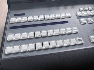 Panel de control de producción de video profesional. - Diseño compacto y ergonómico. - Interfaz intuitiva con botones retroiluminados. - Joystick para control de movimiento.