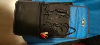 Este DVD portátil viene con todos sus accesorios para que disfrutes de tus películas. - Incluye cargador para coche. - Cables de conexión RCA (rojo, blanco, amarillo). - Cable con conector jack de 3.5mm.