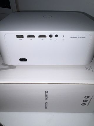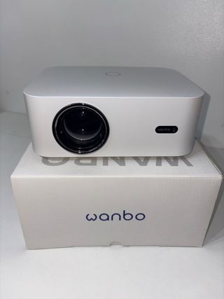Proyector Wanbo X2 Max en color blanco. - Con pantalla de 180x180 manual. - Con su caja y mando original. - Ofrece una resolución nativa Full HD de 1080p y un brillo de 450 lúmenes ANSI para imágenes nítidas y brillantes. - Cuenta con enfoque automático (autofocus) mediante un sistema de algoritmo de visión IA y corrección trapezoidal automática multiángulo. - Integra el sistema operativo Android 9.0, lo que permite la instalación de aplicaciones y el acceso a plataformas como YouTube y Netflix. - Dispone de conectividad Wi-Fi 6 de doble banda y Bluetooth 5.0 para una conexión rápida y estable.