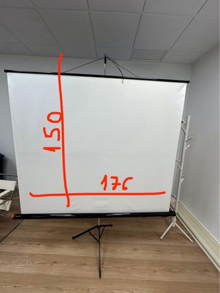 Pantalla de proyector con trípode para fácil montaje y transporte. Ideal para presentaciones o cine en casa. - Pantalla blanca mate. - Soporte trípode plegable. - Barra inferior para tensión.