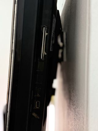 Televisor de la marca TCL en color negro. Funciona bien, solo que la pantalla tiene una grietas visibles en la esquina superior izquierda. Por lo demás todo perfecto