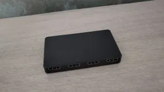 Dispositivo divisor HDMI con una entrada y cuatro salidas. El dispositivo esta pensado para replicar una salida de video en 4 tv o monitores por conexion HDMI. - Diseño compacto y elegante. - Carcasa negra.