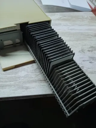 Proyector de diapositivas Reflecta AF con función de autoenfoque. Ideal para digitalizar o visualizar tus colecciones de diapositivas. - Mecanismo de carga de diapositivas. - Bandeja para diapositivas.