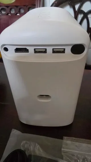 Proyector LED en color blanco, en perfecto estado, nunca se ha utilizado. Incluye mando a distancia y cable de alimentación. Es compacto, ligero y fácil de utilizar.