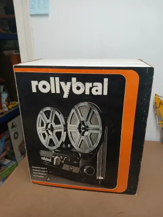 Proyector de cine Super 8 de la marca Rollybral, fabricado en Italia en los años 70. Un clásico para revivir tus películas nuevo en su caja original y con instrucciones sacado de almacén de jugueteria tal y como está en las fotos - Diseño vintage con carretes. - Acabado en negro y detalles naranjas.
