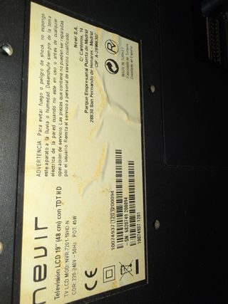 TV Nevir 19 sin mando ni cable de antena