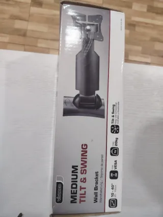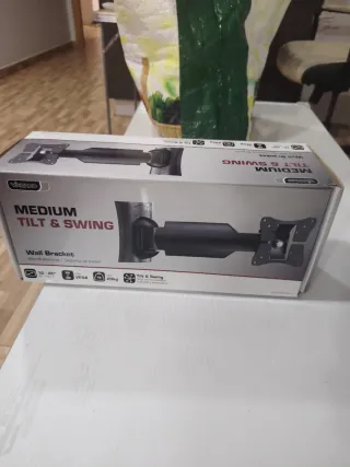 Soporte de pared para TV Vivanco, modelo MEDIUM TILT & SWING. Permite ajustar la posición de tu televisor. - Compatible con pantallas de 10 a 40 pulgadas. - Soporta hasta 20kg de peso. - Estándar VESA.