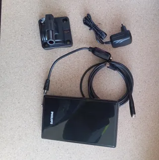 Reproductor de video de la marca Philips. - Incluye adaptador de corriente y mando. - Instrucciones de uso. - Buen funcionamiento - Conector SCART para conexión a TV.