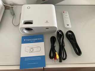 Proyector portatil, pequeño y perfecto para usar en casa o llevarlo de viaje para ver tus películas y series. Incluye cable usb-c, toma de corriente y mando para controlar el proyector a distancia.Tambien tiene ranura para tarjeta sd y meter ahí tus películas. Nunca usado. Se realizan envios.