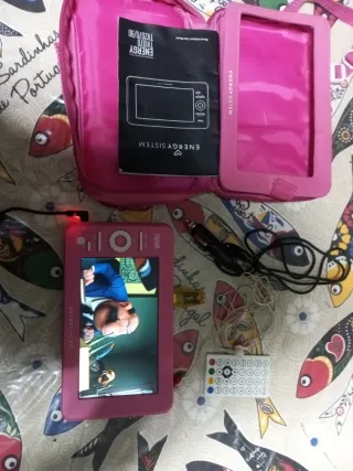 Reproductor portátil de la marca ENERGY SISTEM. - También para fotos. - Reproduce por USB en video solo algunos formatos, ejemplo avi.hay que convertirlo con un programa de Pc,es muy fácil o descargarlos en ese formato. - Regalo USB de 16GB - Modelo TV1070. - Incluye funda protectora. - Mando a distancia. - Conector de mechero y de corriente, batería algo viciada,tiene que enchufarse para que funcione bien. - Tiene anclaje para reposabezas de coche.