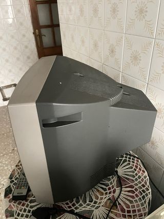 Televisor Sanyo en color gris. - Diseño clásico. - Pantalla de tubo. - Se necesita Tdt para su funcionamieto.
