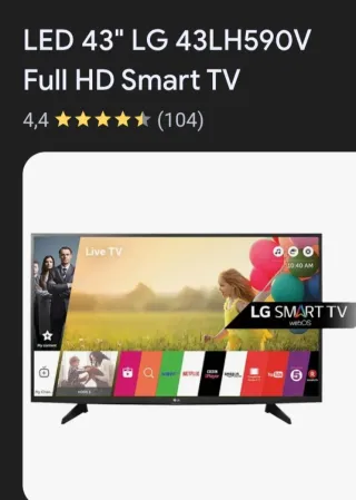 Televisión LG de 43 pulgadas. - Pantalla plana. - Diseño moderno. - Full HD Smart Tv. - Disponible con el pie por si no se quiere colgar. ¡Poco uso! Está colocada en un dormitorio y con un bebé apenas se usó.