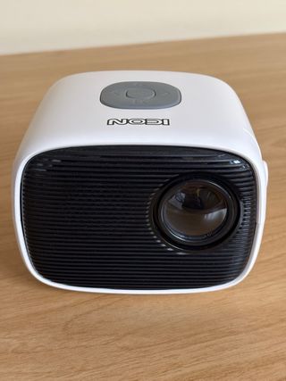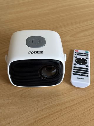 Mini proyector portátil de la marca Icon, ideal para crear tu propia sala de cine en casa. Compacto y fácil de transportar. - Diseño moderno en blanco y negro. - Incluye mando a distancia. - Regalo cable HDMI